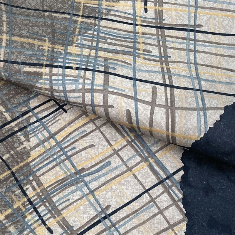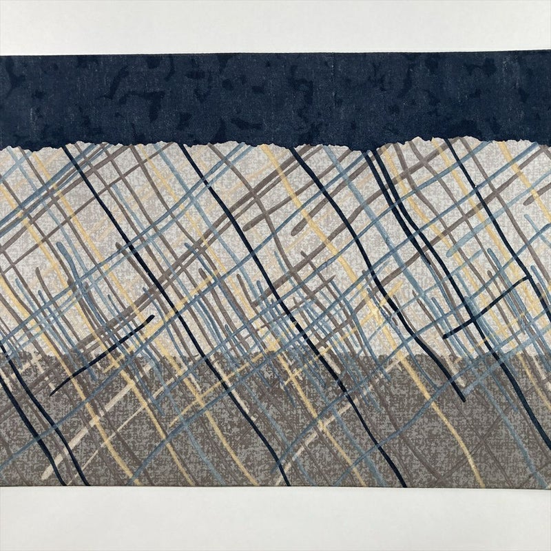 【色柄】グレー カジュアル 変わり斜め格子 牛首紬 染め 全通