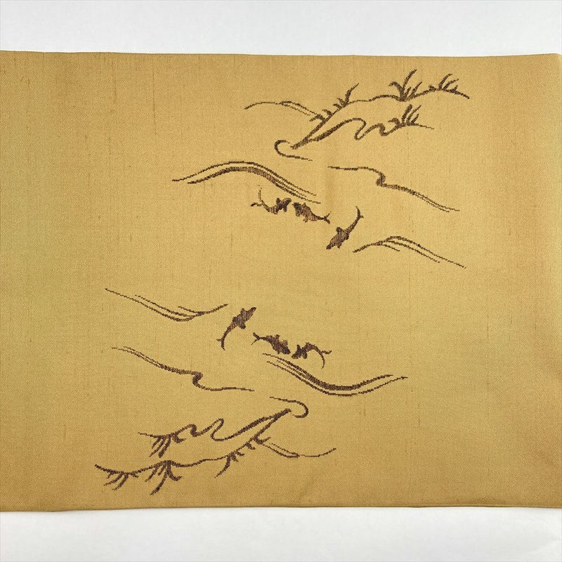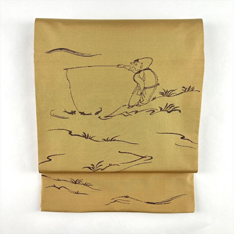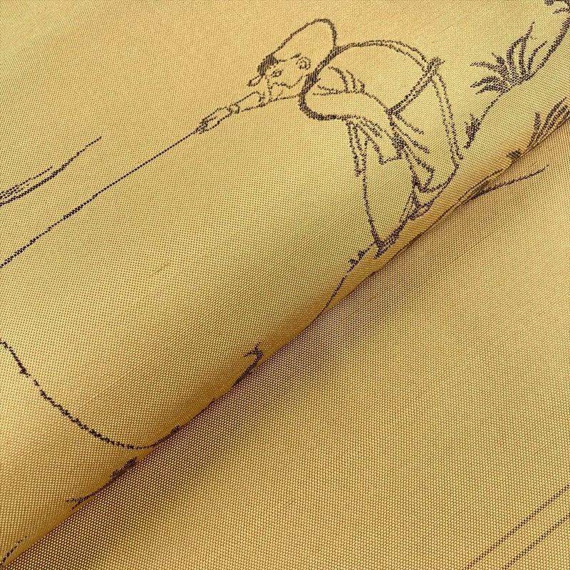 (中古)袋帯 芥子色 黄 カジュアル 六通 織り 釣童子 絹