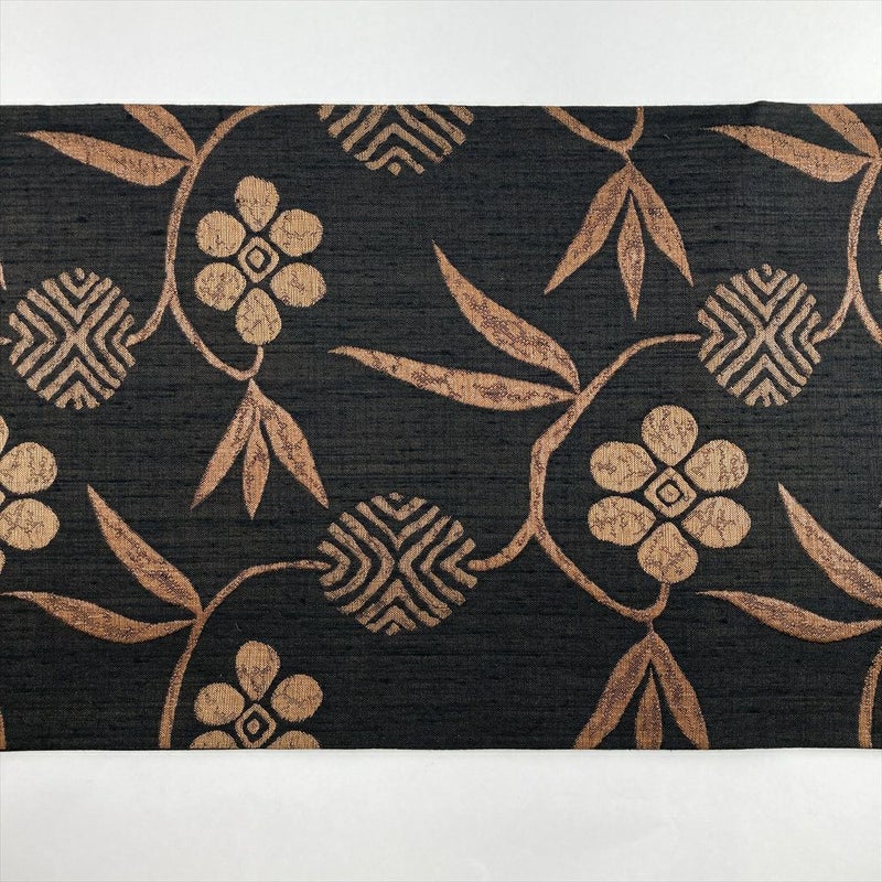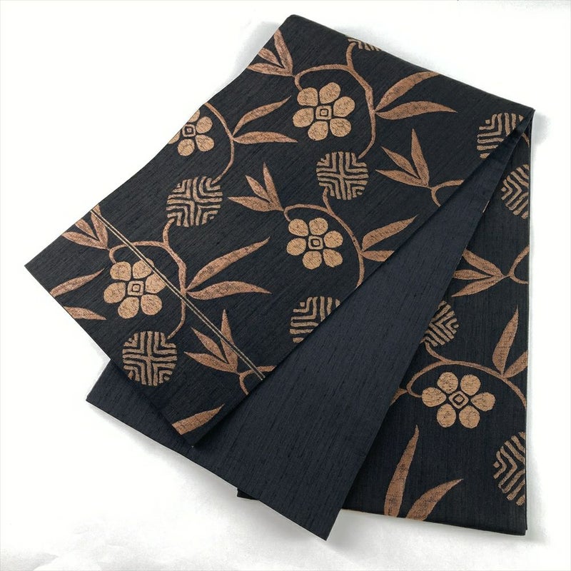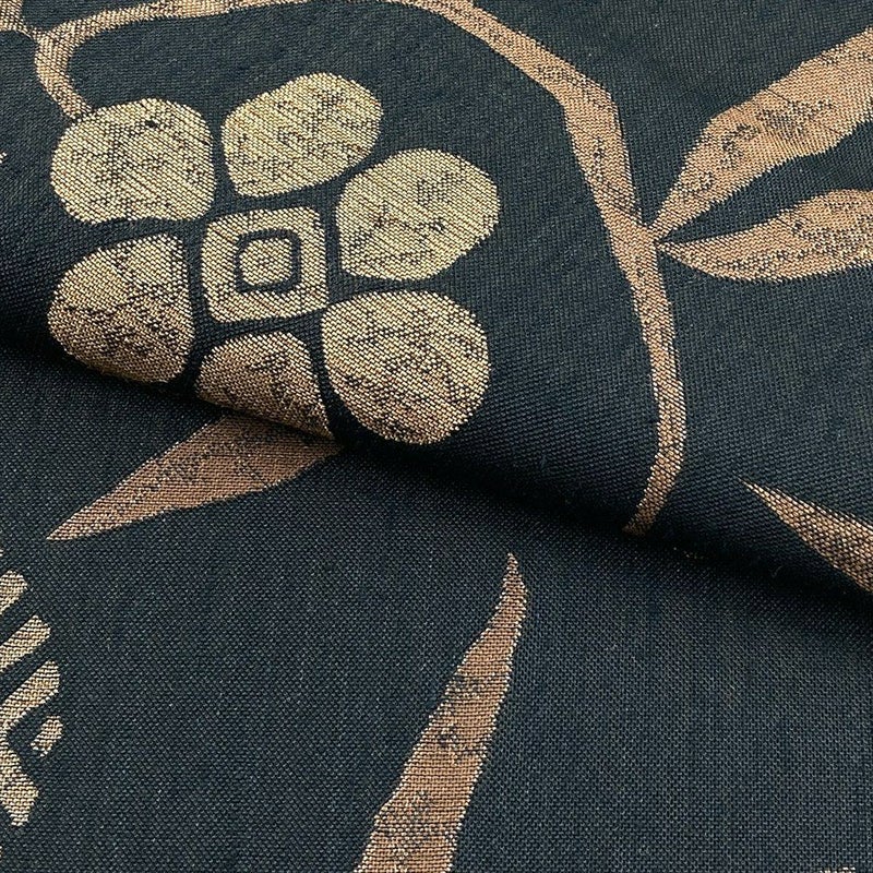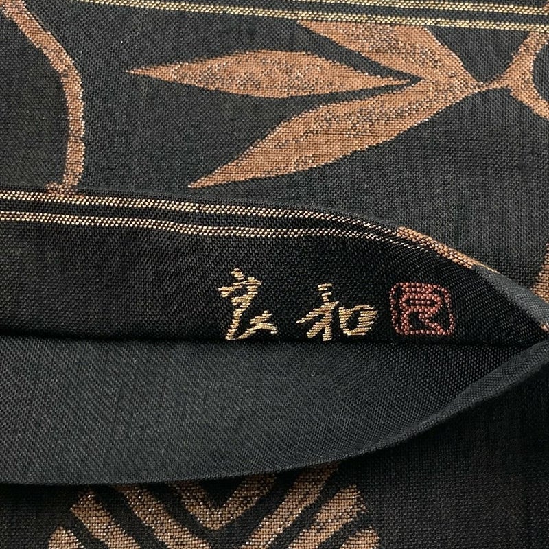 黒茶地に笹蔓文を織り込んだ袋帯。
