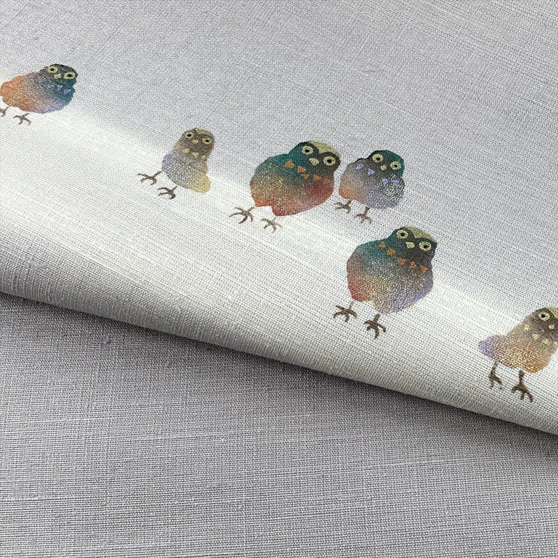 銀糸・金彩・銀彩で描かれた梟が印象的な袋帯。