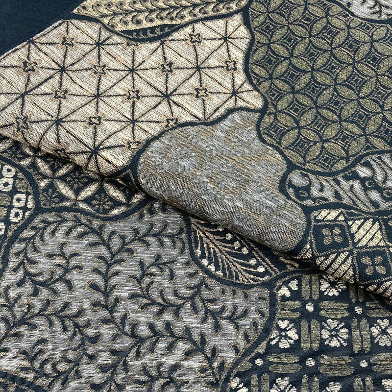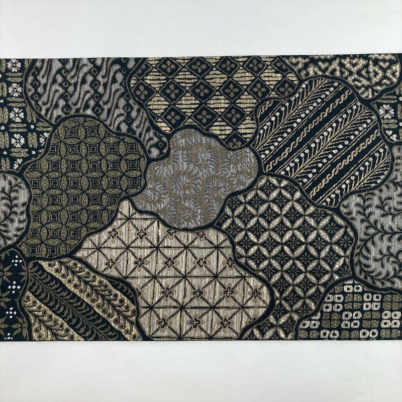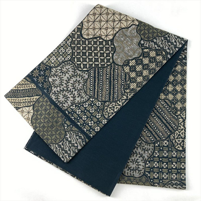 深緑地に寄せ柄を織り込んだ袋帯。