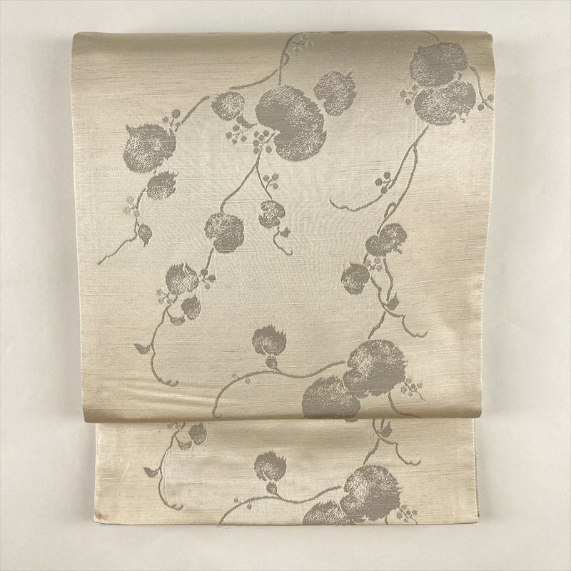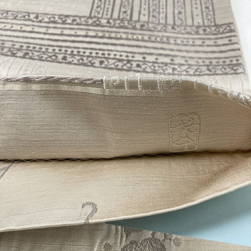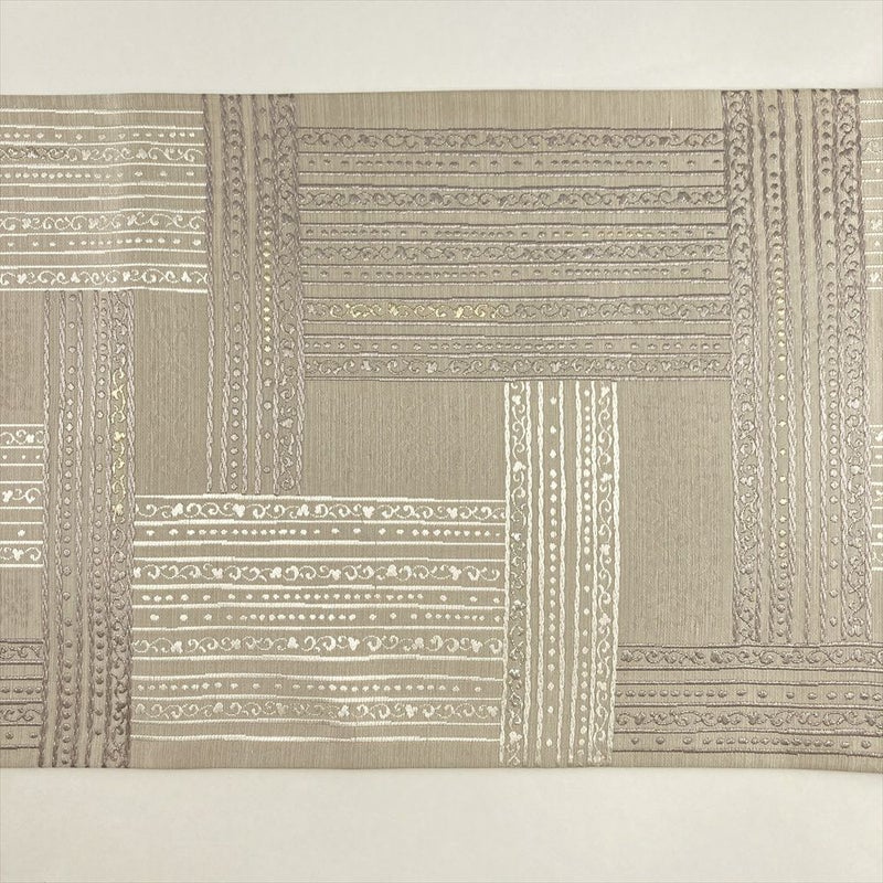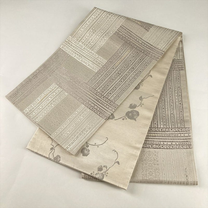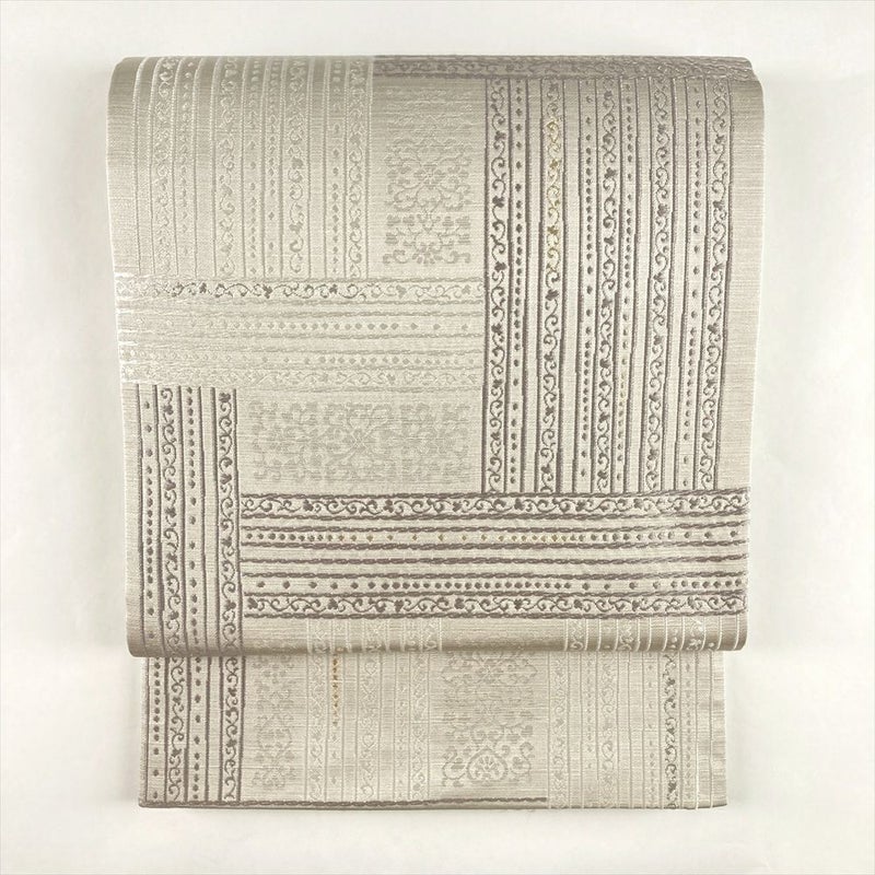 (中古)袋帯 白銀 セミフォーマル 六通 両面 リバーシブル 織り 銀糸 金糸 オリエンタル 変わり格子 絹