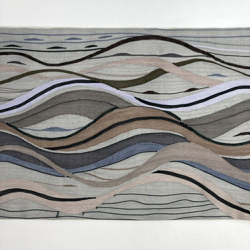 (中古)袋帯 グレー カジュアル 全通 織り アルマン モダン 波 絹