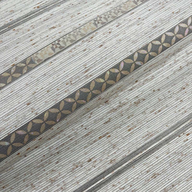【色柄】薄灰 グレー カジュアル 横段 七宝 麻の葉 織り ぜんまい 六通