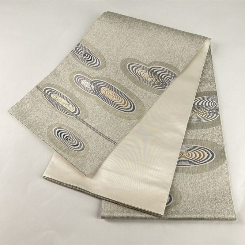 (中古)袋帯 銀 セミフォーマル 六通 織り 金糸 銀糸 波紋 絹