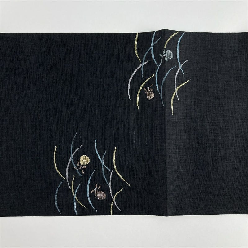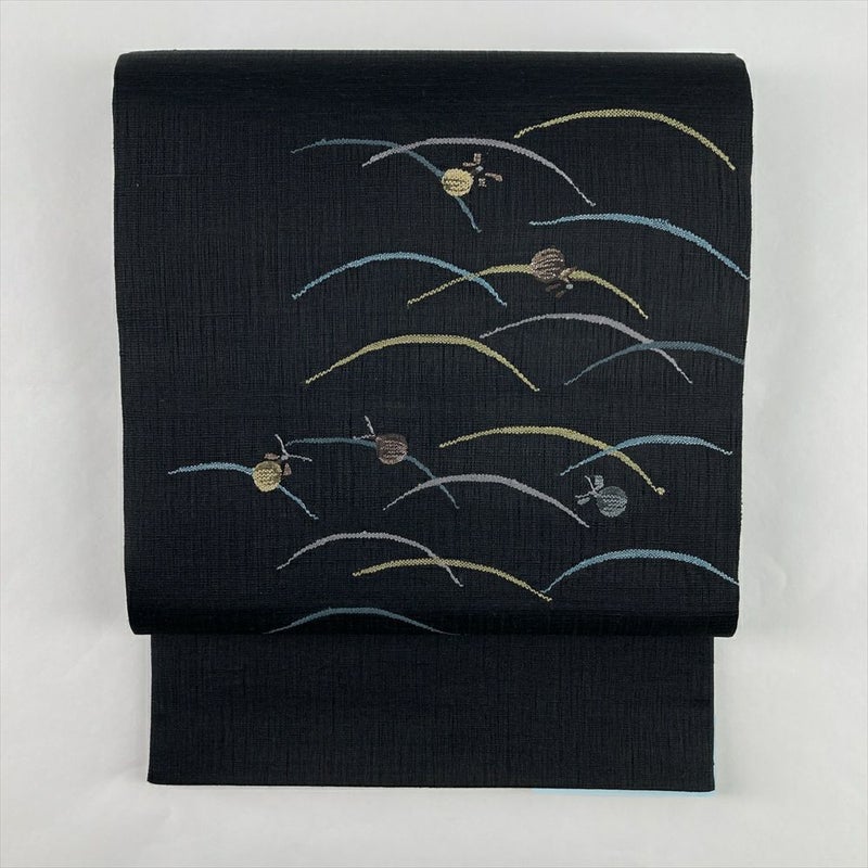 (中古)袋帯 黒 カジュアル 六通 織り 金糸 銀糸 蛍 露芝 絹