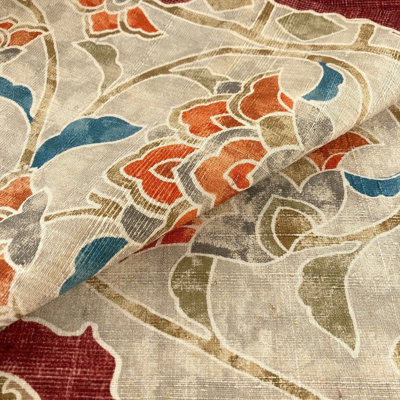 【色柄】白茶 臙脂 カジュアル 花唐草 染め 全通