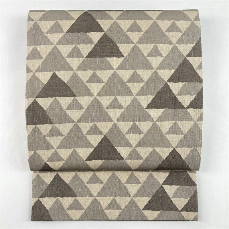 生成り地に染めで表現された鱗文様が、すっきりとした印象のしゃれ帯。