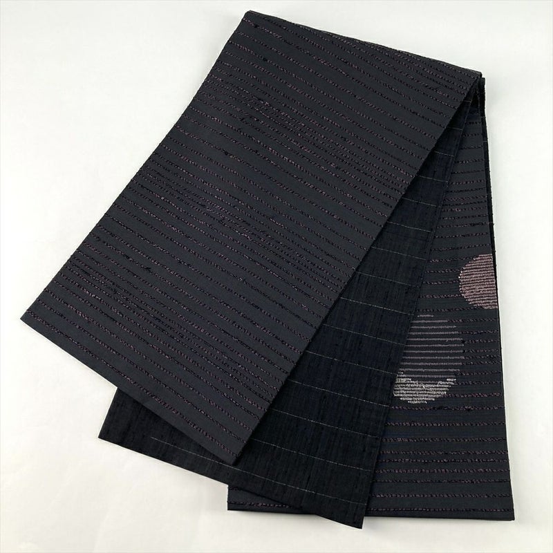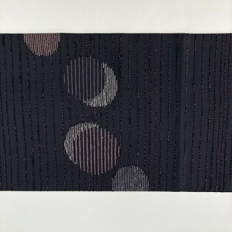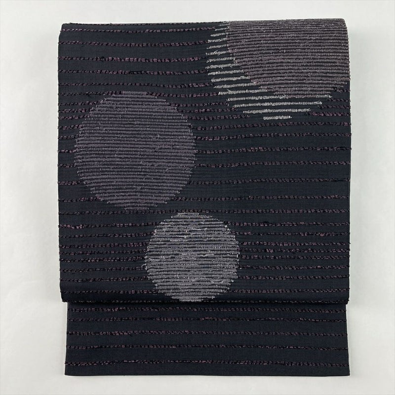 (中古)袋帯 チャコールグレー カジュアル 六通 織り 丸に横線 絹