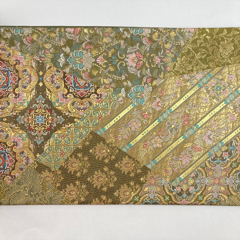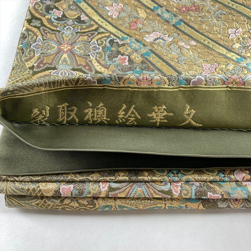 【天平の雅】鶯色に金が揺らめく六通袋帯