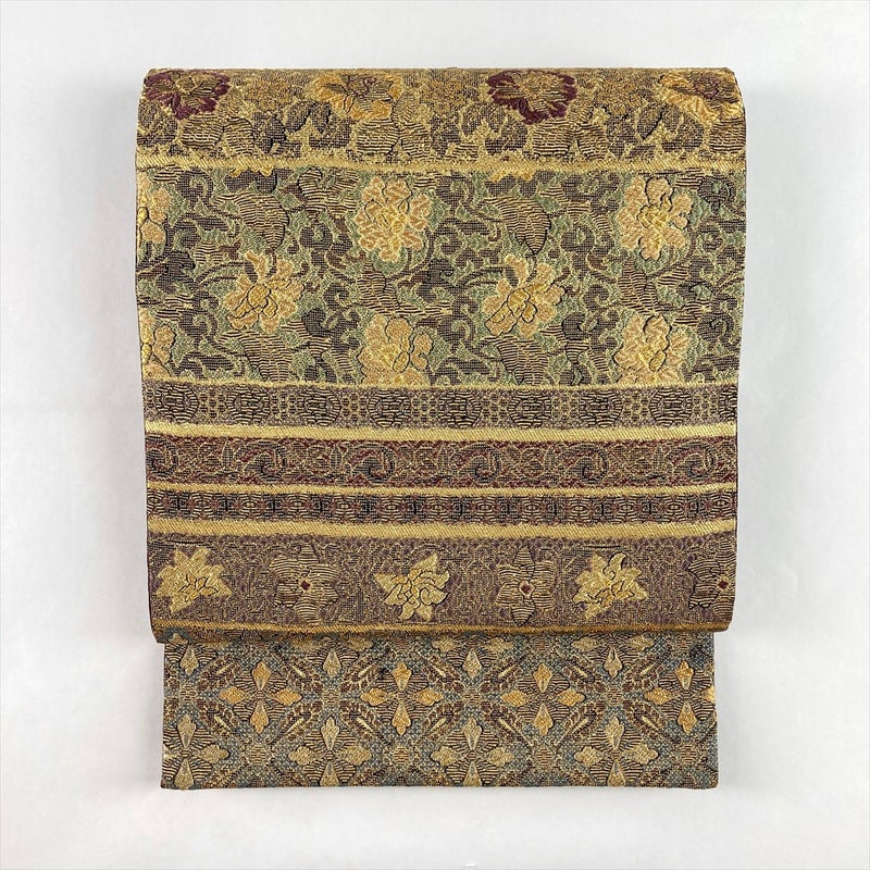 (中古)袋帯 金 セミフォーマル 六通 モール織り 横段 天平文 絹