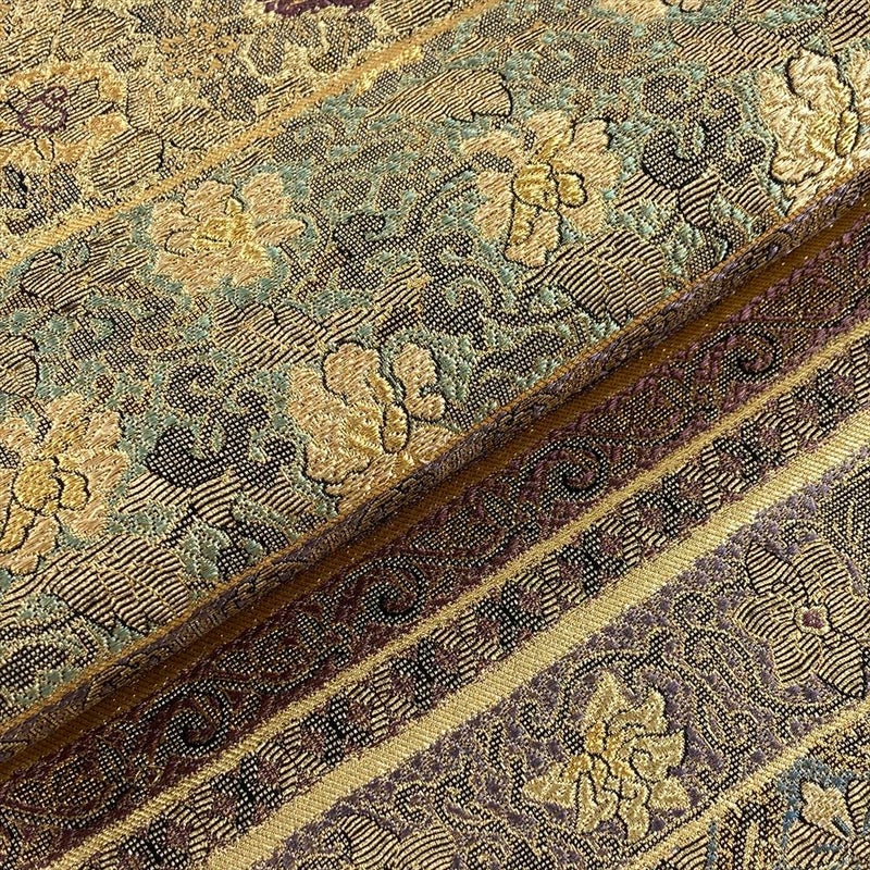 独自のモール織で金糸を織り込んでおり、光の加減で文様が浮き立つような奥行きを楽しめます。