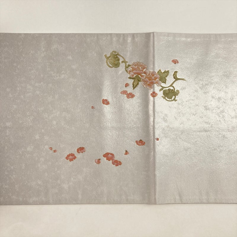 (中古)袋帯 銀 セミフォーマル 六通 織り 牡丹 桜 華文 絹