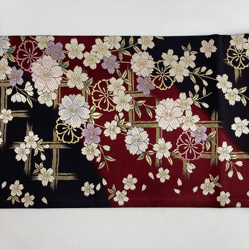 咲き誇り、舞う桜の意匠が、確かな重みを感じさせる上質な帯地に美しく映えます。