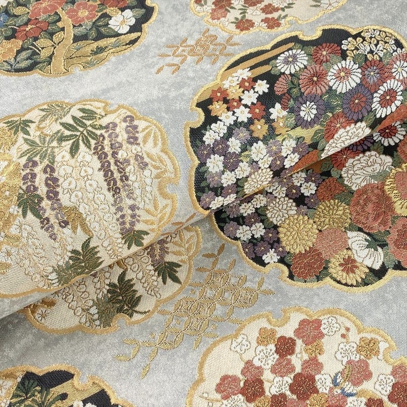 【色柄】銀 セミフォーマル フォーマル 四季花 雪輪文 引き箔 六通