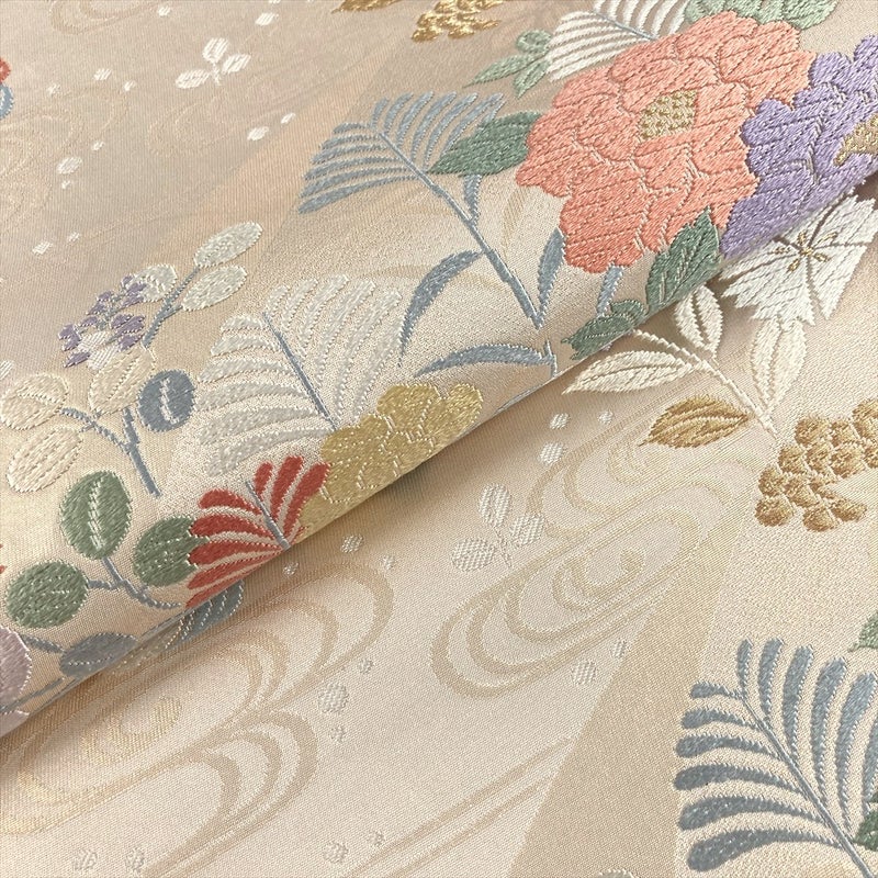 正絹が放つ控えめな光沢に、さらさらと流れる流水と四季折々の花々。
