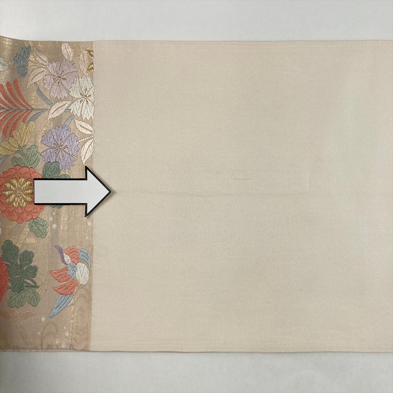 (中古)袋帯 白金 セミフォーマル フォーマル 六通 織り 花鳥文 絹