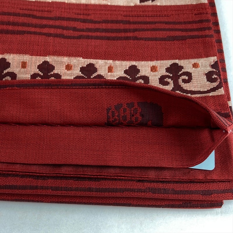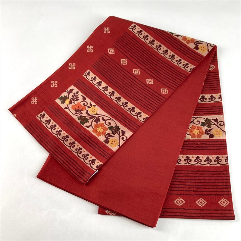 【色柄】赤 カジュアル オリエンタル花草文 織り 六通
