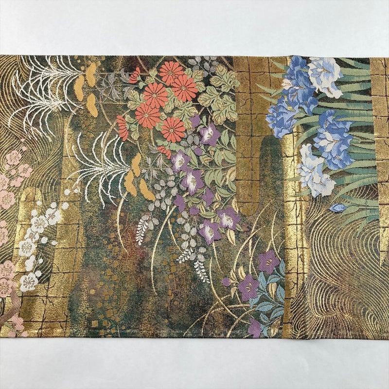 (中古)袋帯 金 フォーマル 六通 織り 四季花 霞 絹