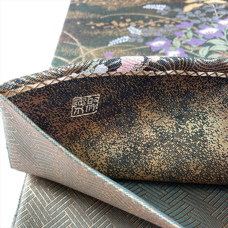 西陣の名門として名高い「じゅらく」の手による、大変気品あふれる袋帯でございます。