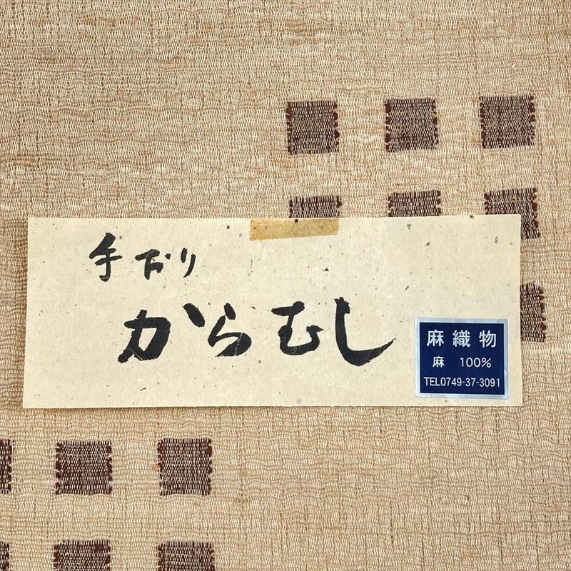 日本最古の織物の一つともいわれる「からむし(苧麻)」を用いた、贅沢な洒落袋帯でございます。