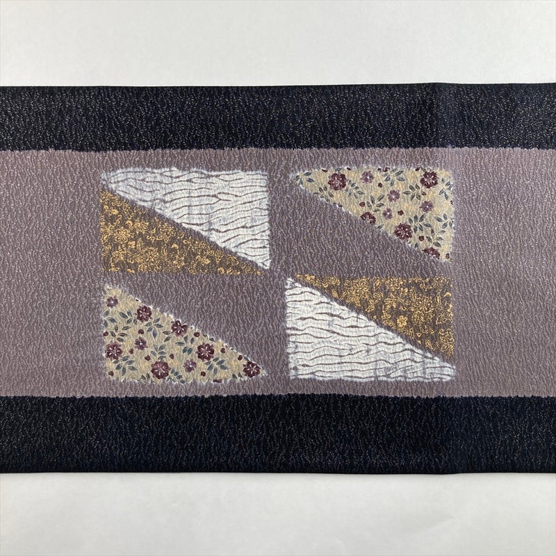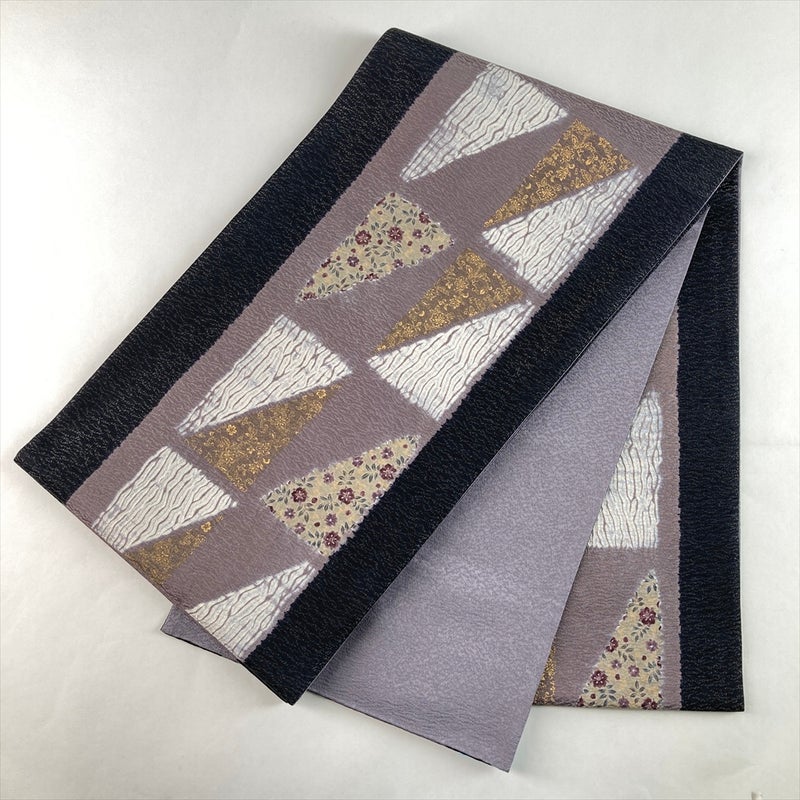 (中古)袋帯 灰紫 セミフォーマル 六通 染め 花唐草 絞り 絹