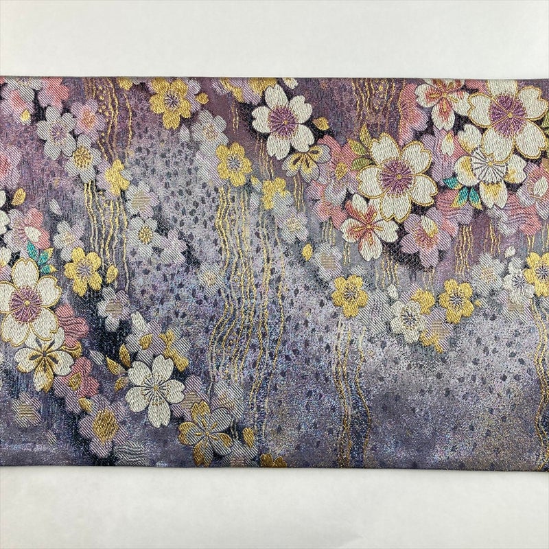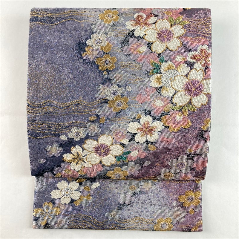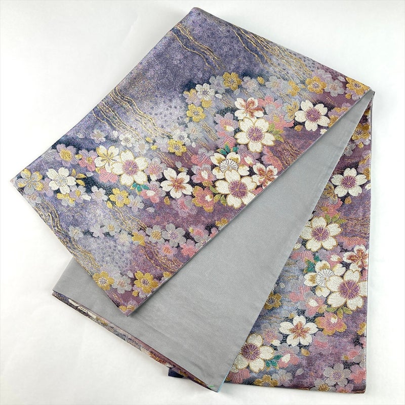 淡く上品な薄紫地に桜文様が咲く、フォーマル向けの袋帯。