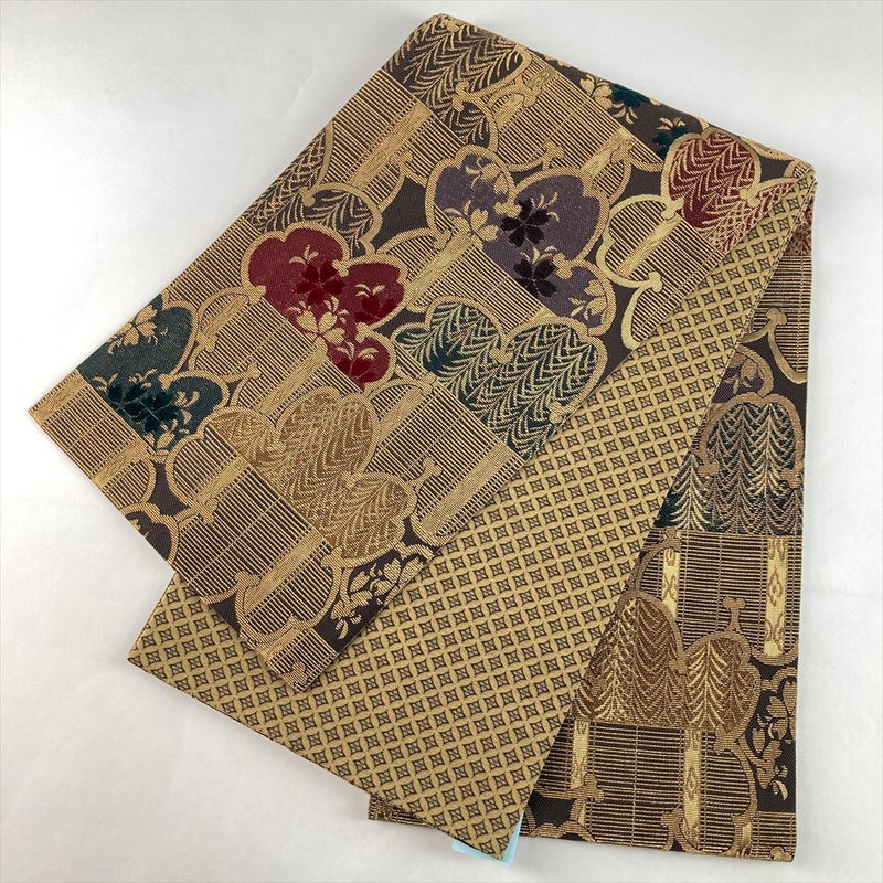 (中古)袋帯 金 フォーマル 六通 輪奈織り 桜 誉田屋源兵衛 絹