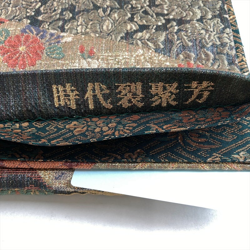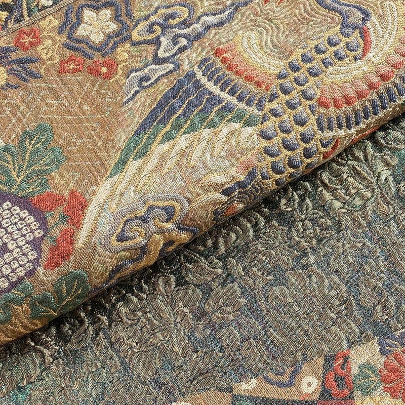 【色柄】金 フォーマル 孔雀 切り嵌め風 吉祥文様 織り 六通