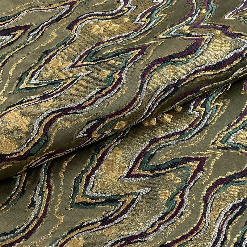 【色柄】茶緑 フォーマル 波模様 織り 金糸 六通