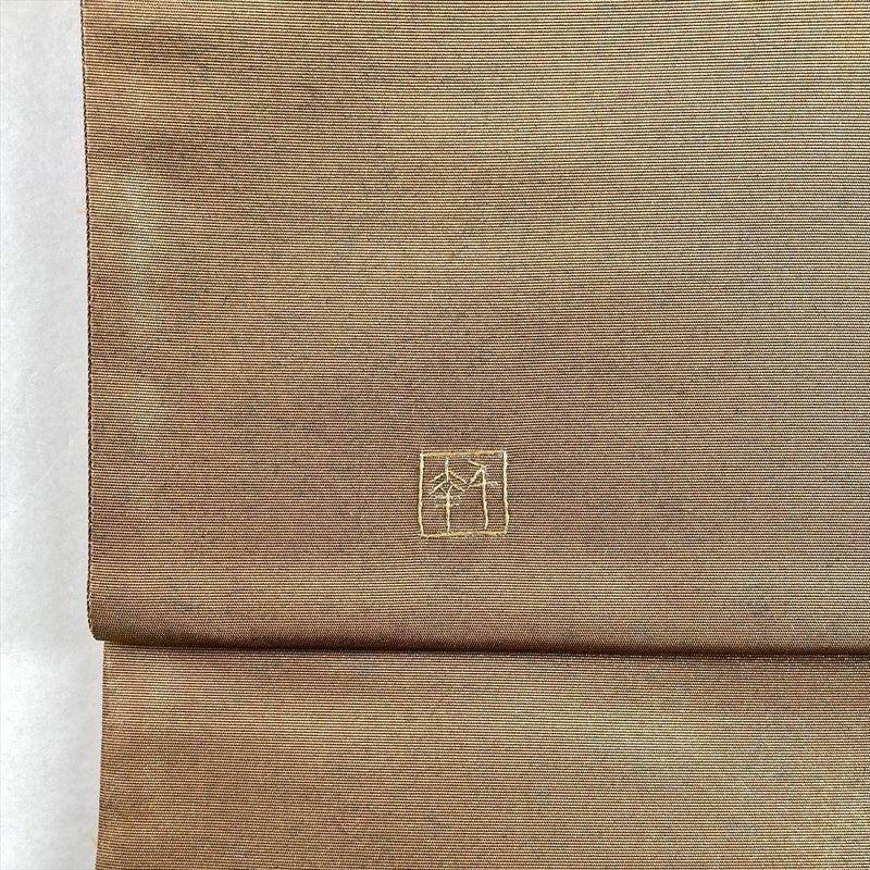 (中古)袋帯 金 茶 セミフォーマル 六通 刺繍 扇面 琵琶楽器 絹