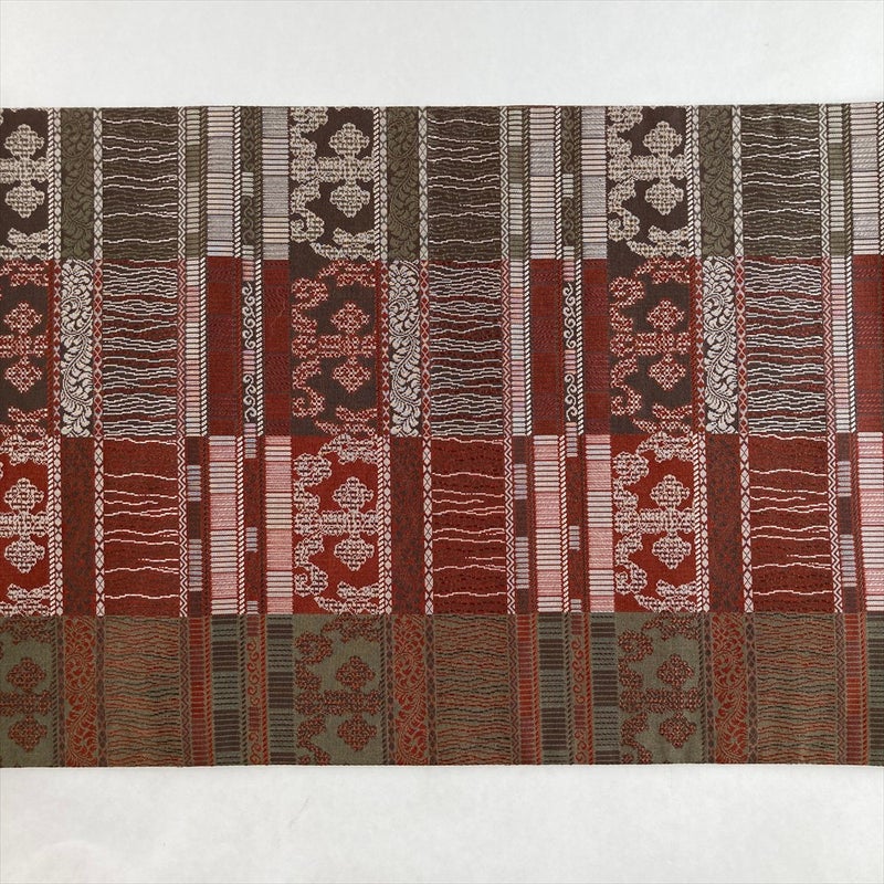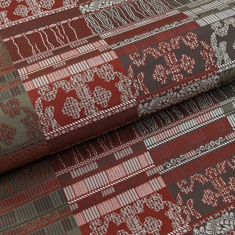 【色柄】赤 灰緑 カジュアル 縞模様 織り 全通