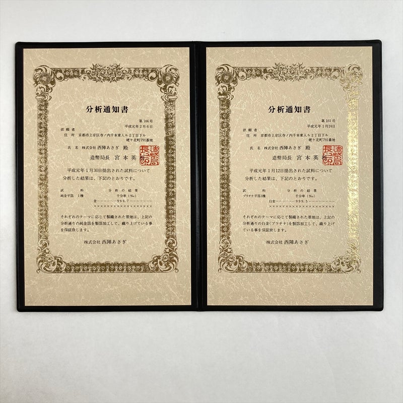 分析通知書付きで品質も安心。