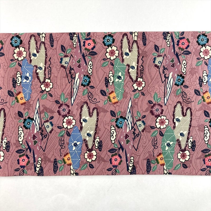 (中古)袋帯 紫 カジュアル 六通 片側未仕立て 染め 琉球紅型 絹
