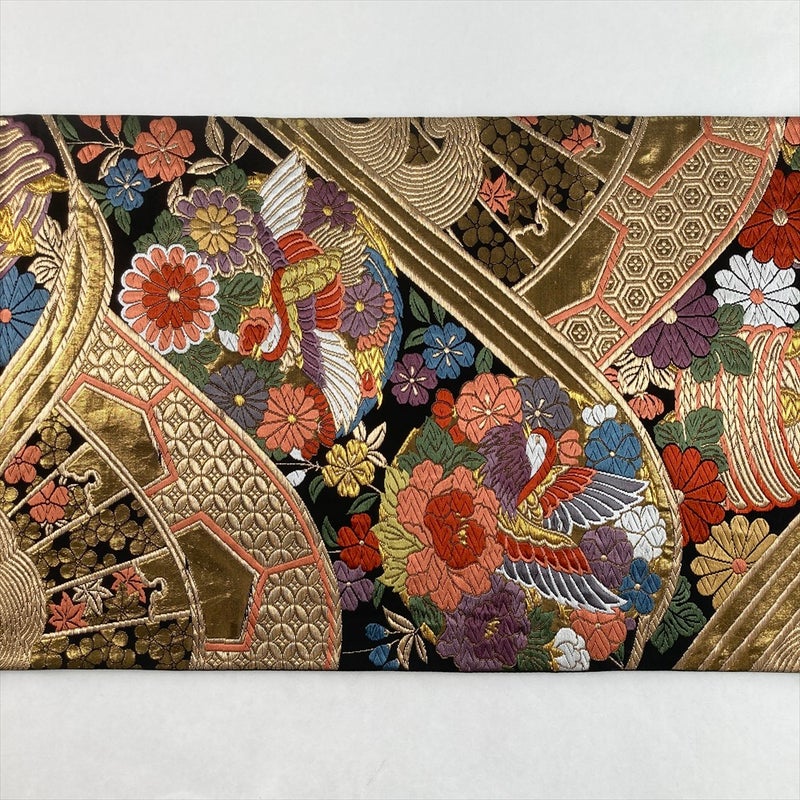 【色柄】黒 金 フォーマル 慶長柄 花鳥 織り 六通