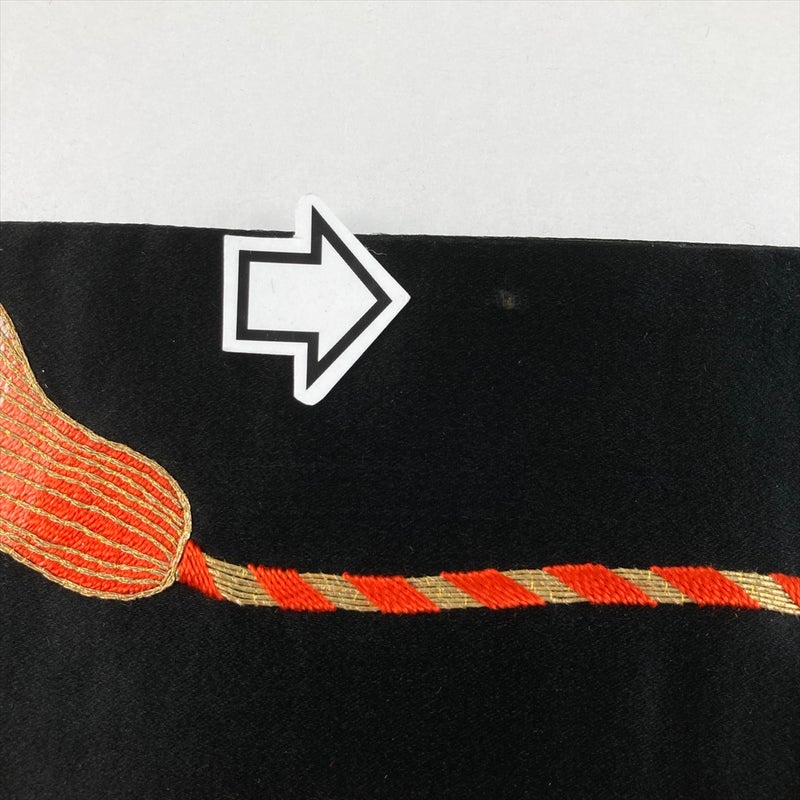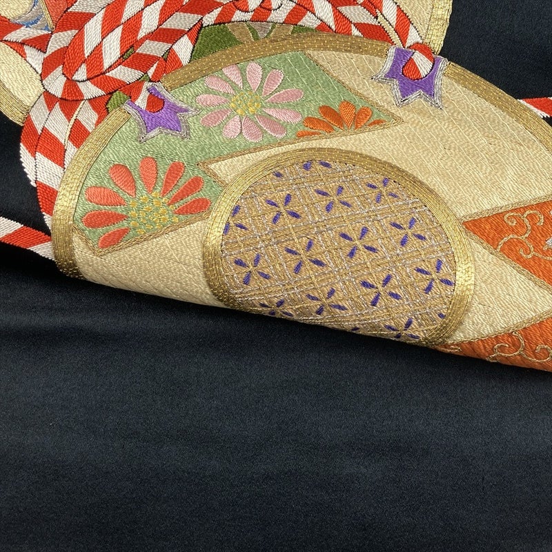 【色柄】黒 ヴィンテージ 鼓 扇 刺繍 六通