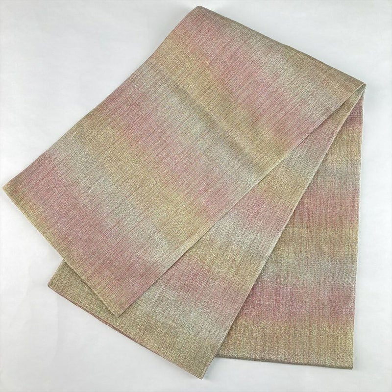 (中古)丸帯 金 ピンク セミフォーマル 全通 金糸 織り 霞 ぼかし 絹