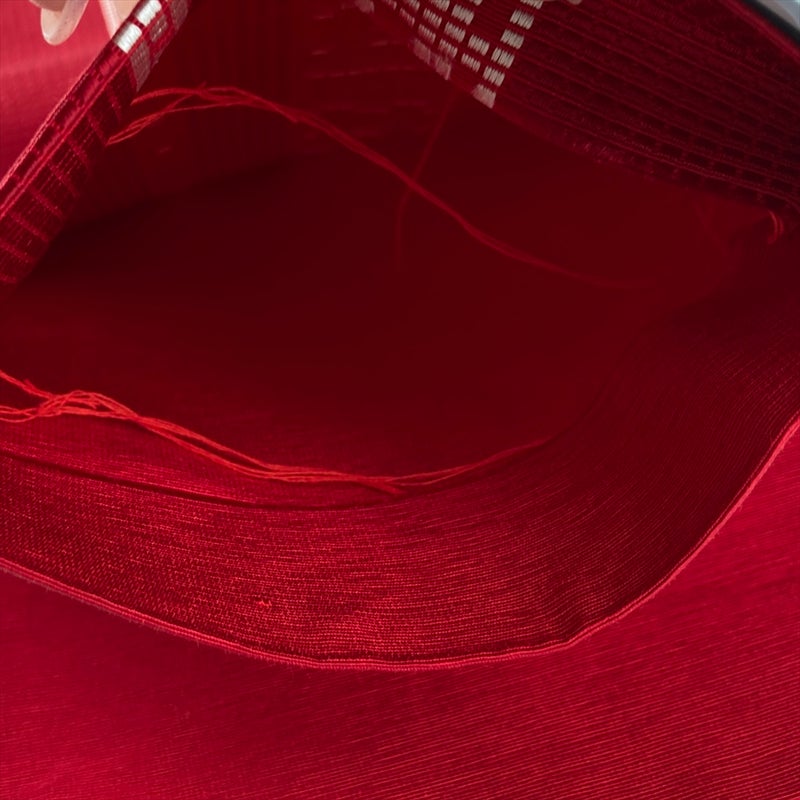 (中古)半幅帯 赤 カジュアル 未仕立て 織り 井桁 絹 未洗い