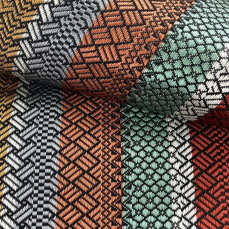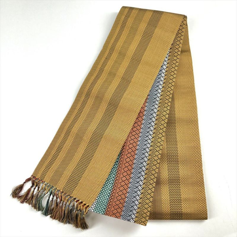 (中古)リユース帯 半幅帯 マルチカラー カジュアル 織り 柄寄せ 未洗い
