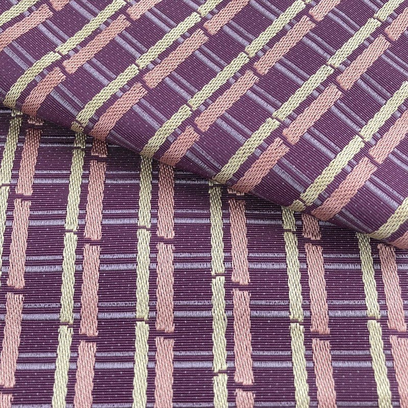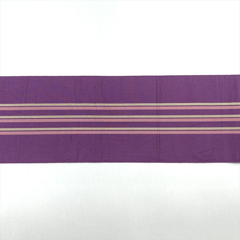 (中古)リユース帯 半幅帯 紫色 カジュアル 織り 途切れ縞 変わり格子 未洗い