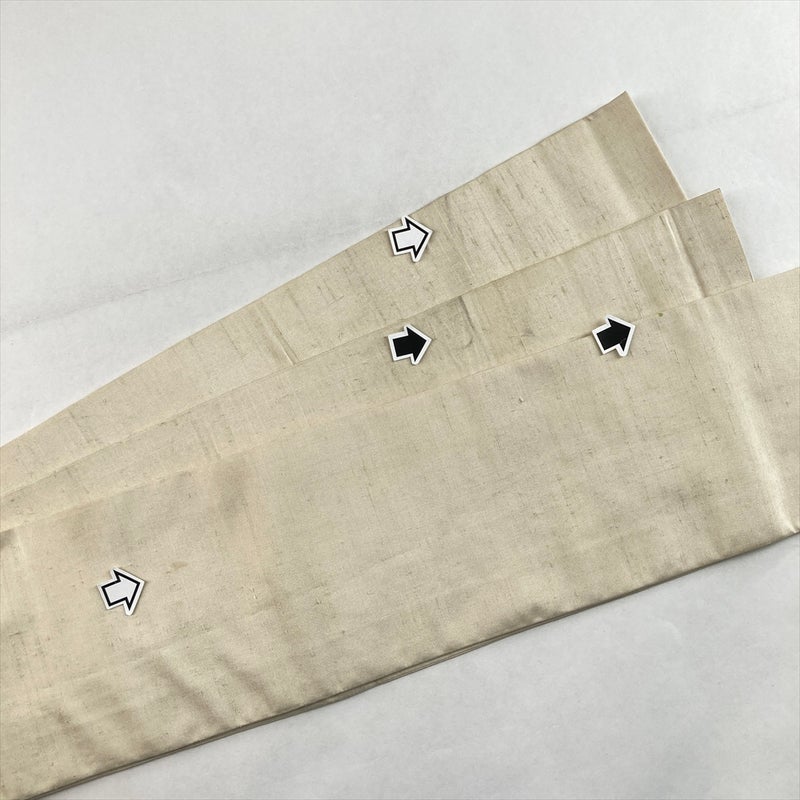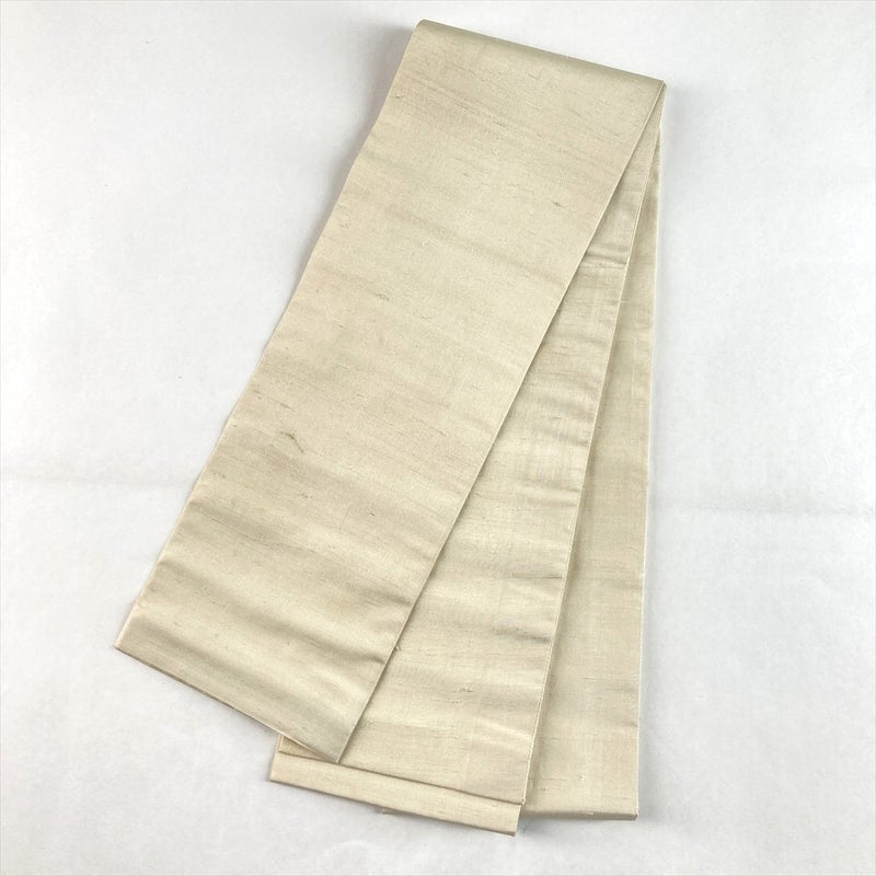 (中古)半幅帯 白 生成 カジュアル 両面 リバーシブル 織り 無地 紬地 絹 未洗い