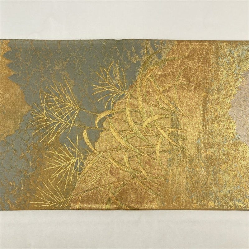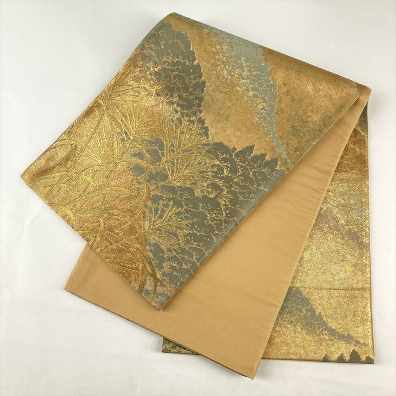(中古)京袋帯 金色 セミフォーマル 六通 織り 引き箔 金糸 山並み 薄 絹