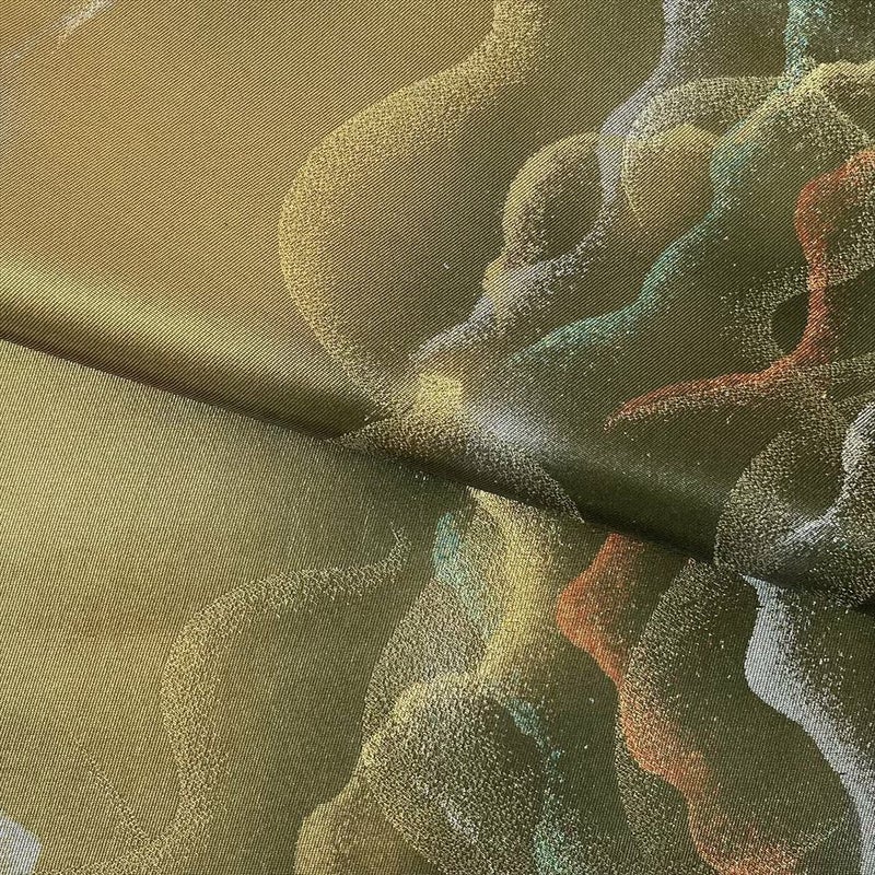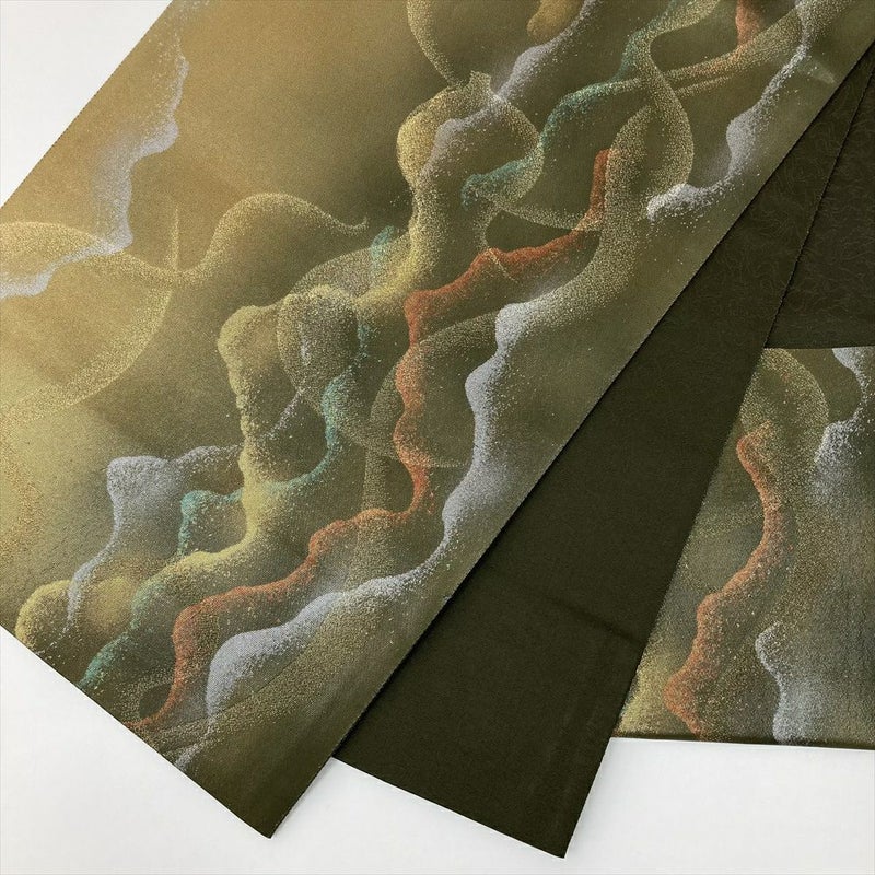 しゃれ帯は、風合いが豊かで、デザイン性が高く、友人との会食やおでかけ、街歩きなど、比較的カジュアルな場面で、普段使いにおすすめです。折りシワ締めシワなど若干の使用感がございます。保存臭がややございます。
