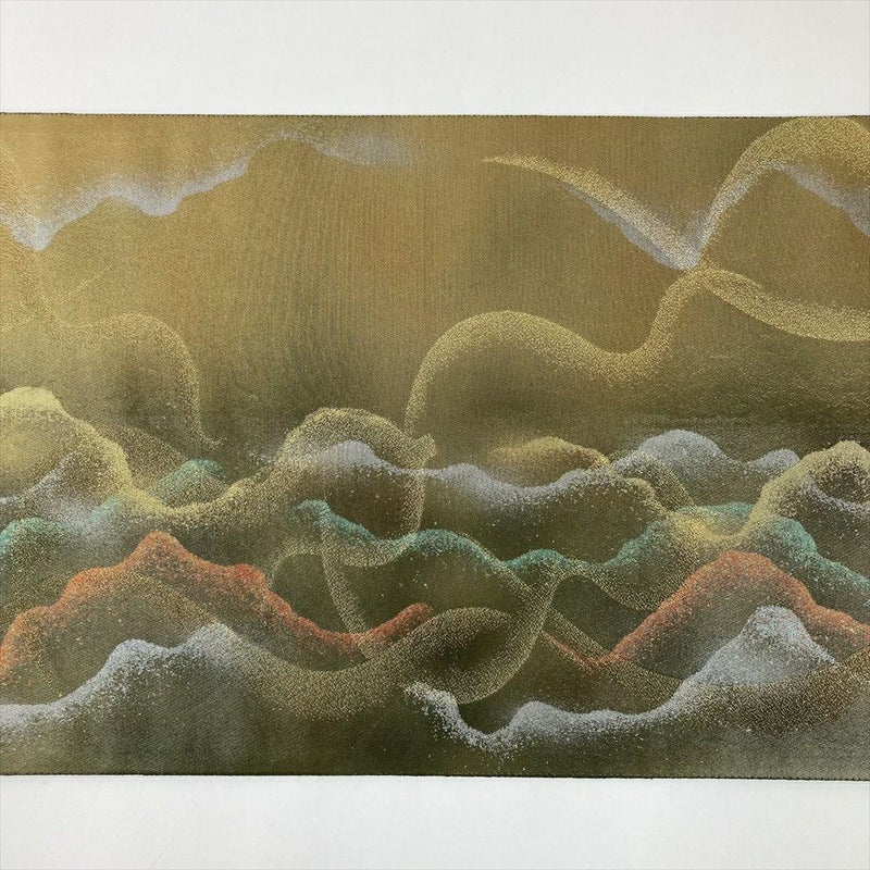 (中古)京袋帯 カジュアル 六通 切箔 カラー箔 流線 グラデーション
