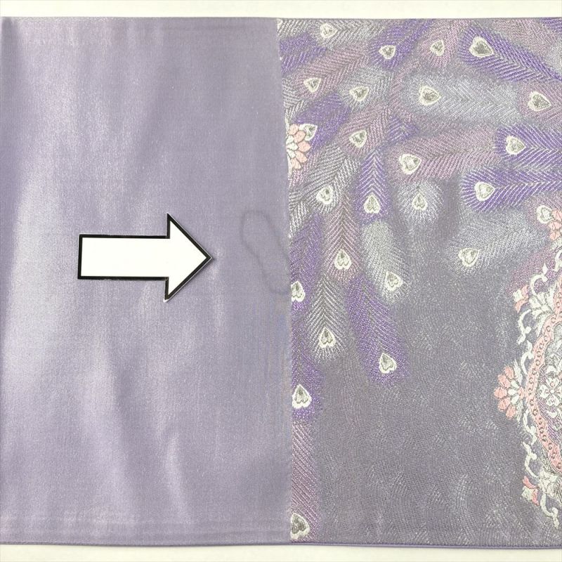 【色柄】薄紫 銀 カジュアル セミフォーマル 華文 孔雀の羽根 織り 六通