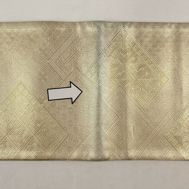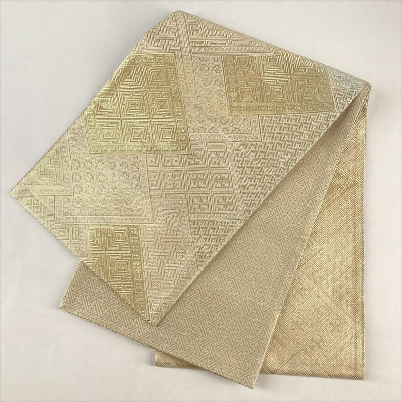 (中古)京袋帯 金色 セミフォーマル 全通 織り 引き箔 菱 絹