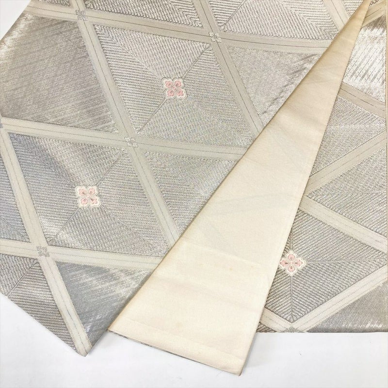 (中古)京袋帯 銀 セミフォーマル カジュアル 六通 銀糸 色糸 菱格天井