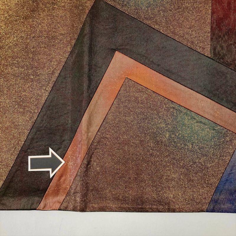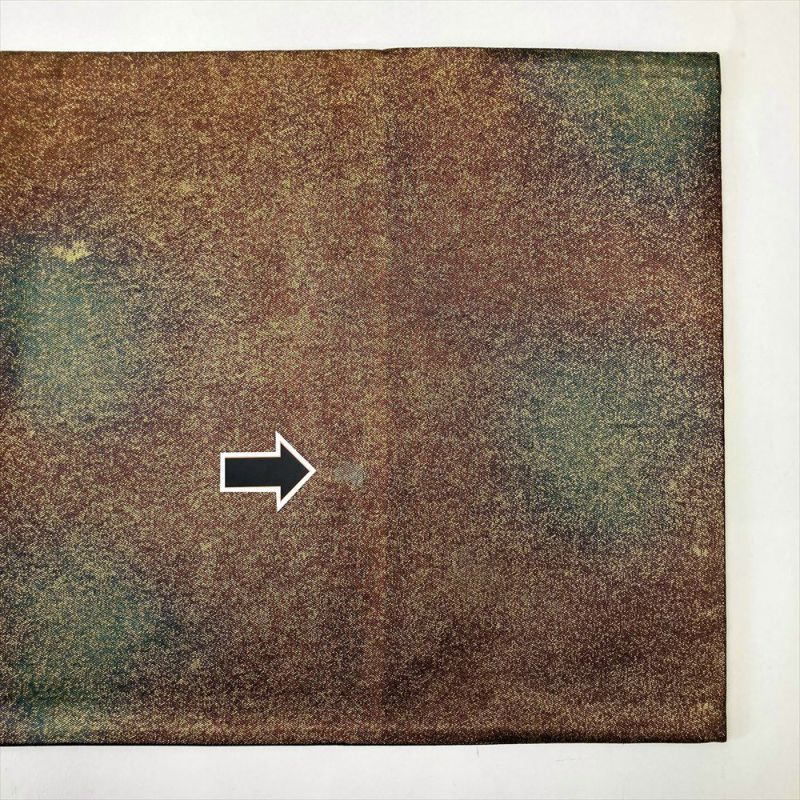 (中古)京袋帯 マルチカラー 茶 カジュアル 六通 切箔 うるし箔調 切り嵌め