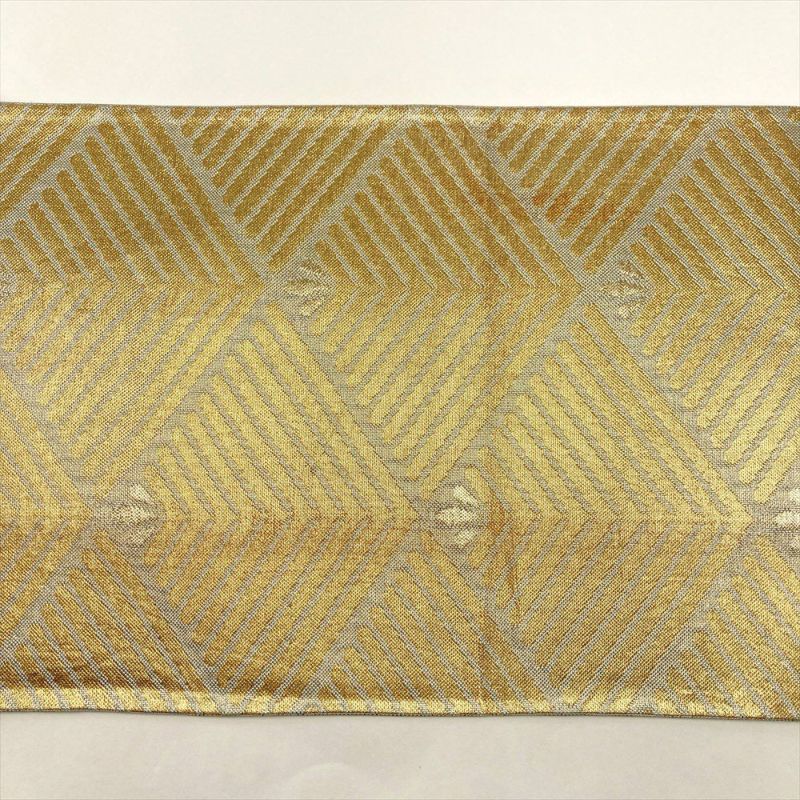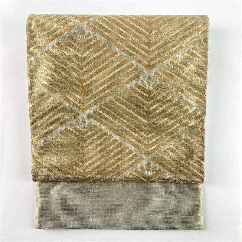 (中古)京袋帯 金 薄緑 セミフォーマル 六通 金糸 引き箔 松葉菱 絹