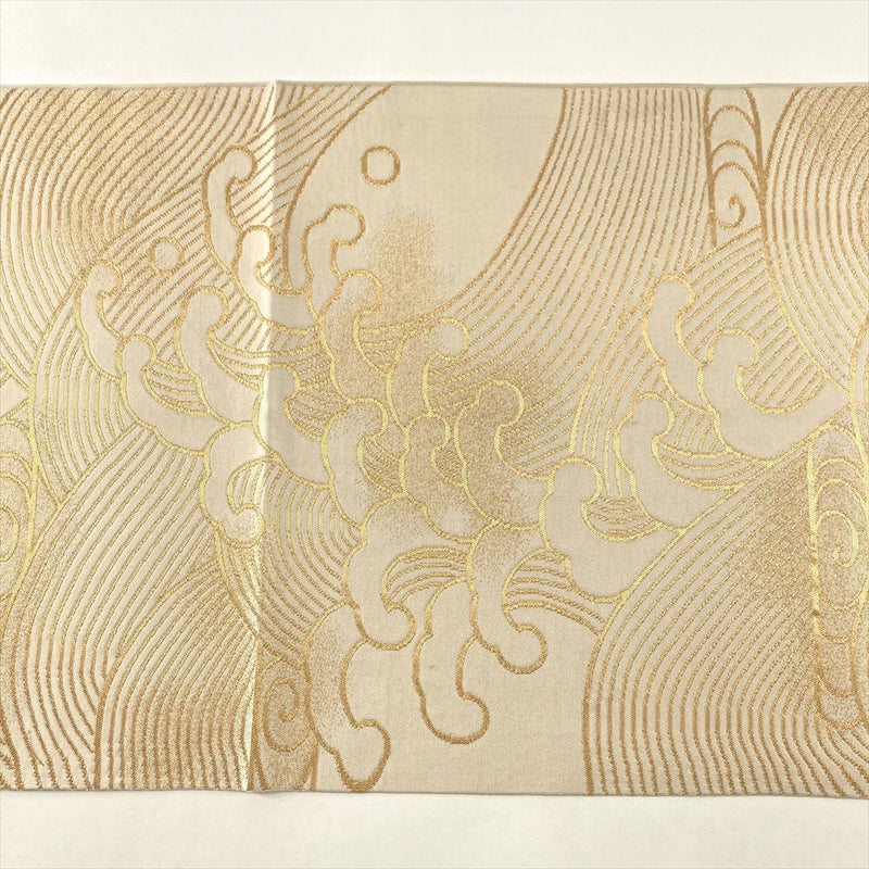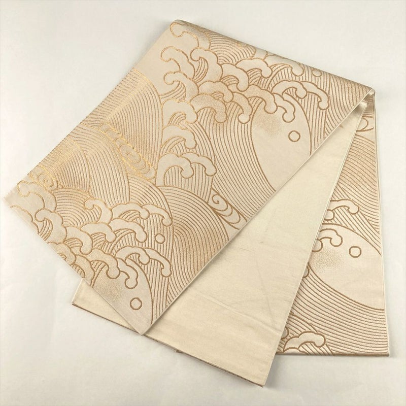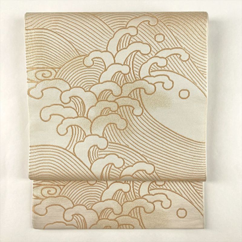 (中古)京袋帯 薄ベージュ カジュアル セミフォーマル 六通 織り 波頭 絹